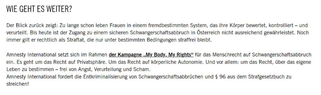 Amnesty International fordert die Entkriminalisierung von Schwangerschaftsabbrüchen und § 96 aus dem Strafgesetzbuch zu streichen!