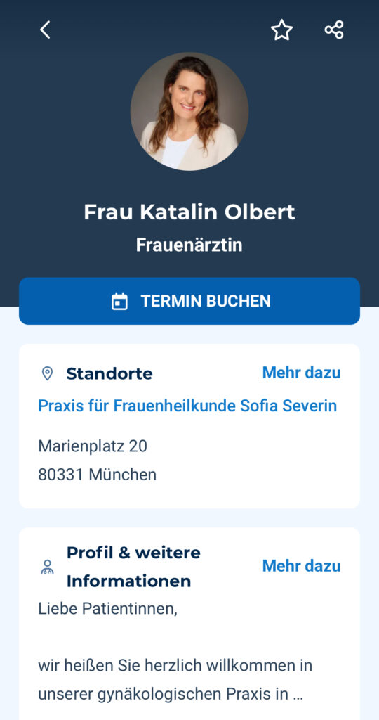 „Katalin Olbert verstärkt unser Team“ seit Oktober 2024 – im Herzen von München -liest man auf der Homepage der Praxis „FRAUENHEILKUNDE SOFIA SEVERIN“.