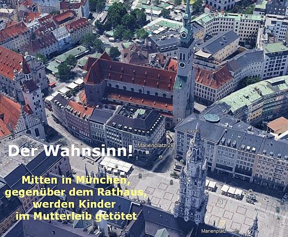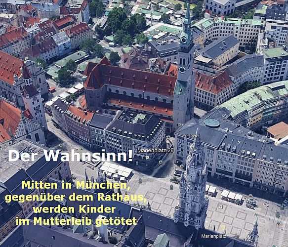 Mitten in München, der am häufigsten von Touristen besuchte, sehr frequentierte Marienplatz, gegenüber dem Münchner Rathaus, befindet sich eine Tötungspraxis für ungeborene Kinder.