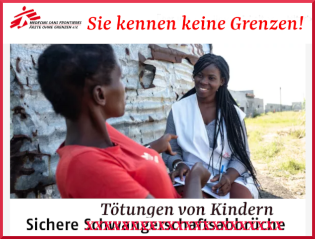 Ob „Ärzte ohne Grenzen“ die Kindtötungen im Mutterleib „nur“ vermittelten oder durch eigene Mediziner ausführten, spielt letztendlich für die Getöteten keine Rolle … diese sind „danach“ ja tot und können nicht mehr aufbegehren.
